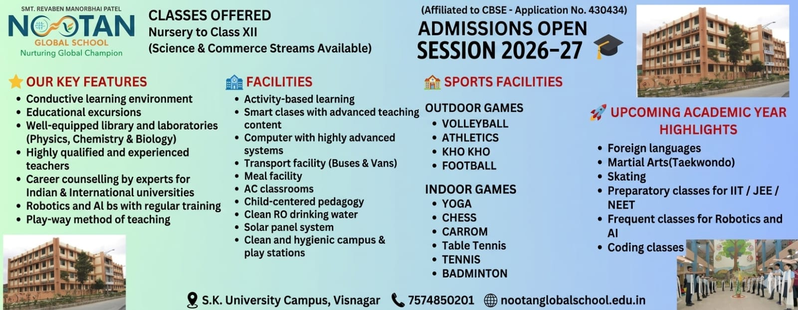 At Nootan Global School, we believe in nurturing every child’s potential through a balanced blend of academic excellence, life skills, and strong moral values. From the first steps in Playgroup to the board exams in Class XII, our experienced educators, modern infrastructure, and student-centric approach ensure a journey of discovery, growth, and success. Join a community where curiosity is encouraged, individuality is celebrated, and learning never stops.